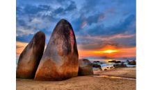 夜宿島上,可聽潮聲,觀漁火,看星星,是看海上日出的好去處。游客可在這里感受曾經荒無人煙的島嶼風情,并可在無人島上暢游與冒險。乘快艇到島上僅需3分鐘。沿著由鑿有國內外各個朝代古幣的花崗石鋪成的“錢路”拾級而上,但見石峰林立,峭壁萬仞,奇樹簇擁。一些天然石峰被冠以“風動石”、“烏紗帽”、“大洞天”和“菩薩洞”等美名。站在山頂,分界洲島周圍海水清澈,與沙灘相銜接,構成了畫家所不及的天然畫卷。