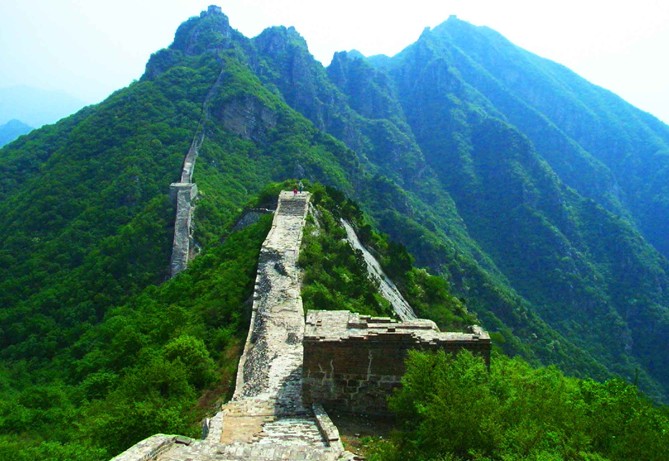 遇見(jiàn)倒塌的路段要繞出長(zhǎng)城,在城墻的石縫里插上樹(shù)枝做梯子,再爬墻進(jìn)去;天梯是一段70度陡坡、70-80米長(zhǎng)的長(zhǎng)城,最窄處60公分寬,臺(tái)階40-50公分高、15公分臺(tái)面,要四肢并用地爬;鷹飛倒仰有一處長(zhǎng)城直立倒塌,要南轅北轍地繞道迂回過(guò)去,下山70-80度陡坡,要不抓住樹(shù)枝,很難站住;北京結(jié)到望京樓一段在長(zhǎng)城里,東側(cè)是城墻,西側(cè)是灌木,沒(méi)有臺(tái)階,非常難走。上不去下不來(lái)的滋味不好受,建議大家在高度的團(tuán)隊(duì)合作下共同完成。攀登用時(shí)單程2-3小時(shí)。