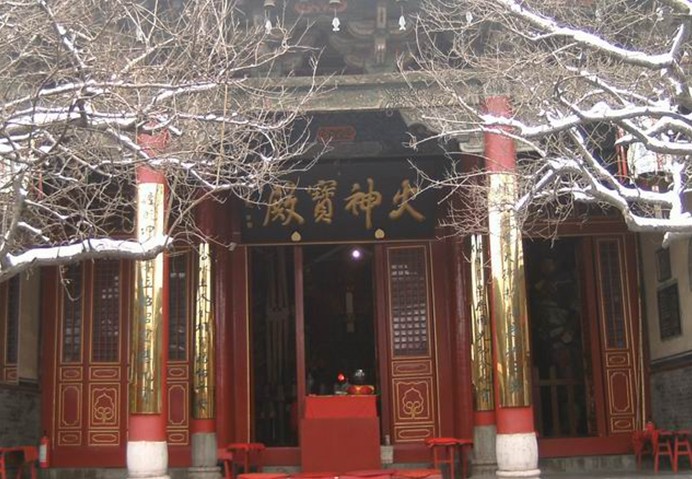 進入火神廟正門,北側為二道門,里面坐北朝南就是火神廟的主體建筑 真君寶殿,面闊三間,進深四間,建筑面積105平方米。內塑火神真君像,開路神方弼及顯路神方相分站左右。