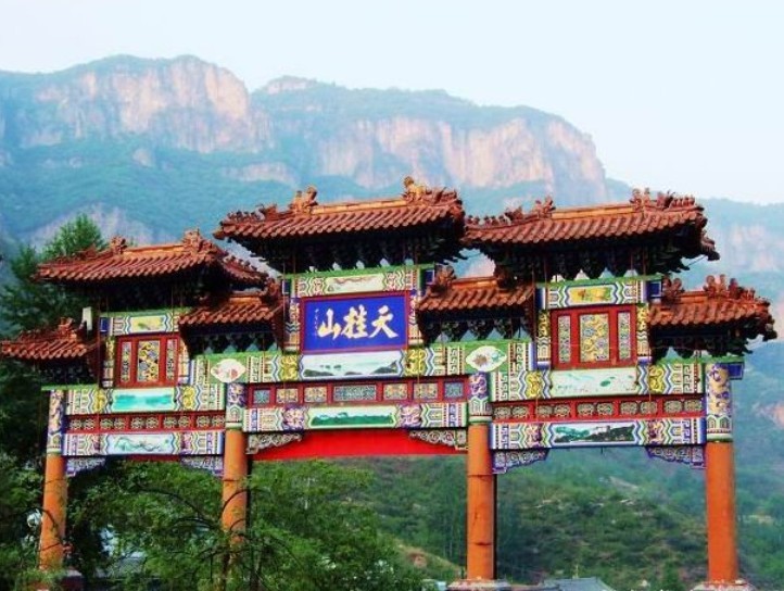 這里峰險、石奇、洞幽、泉多、林木繁茂、云霧繚繞。山上古建原為崇禎皇帝歸隱行宮,后改為青龍觀道院,又稱“北武當”。建筑群規模宏大,富麗堂皇,依山就勢,錯落有致。主要人文景 觀有:真武殿、大光明殿、東西 朝房、鐘樓、鼓樓、蒼巖宮、三道靈官閣等三十余處建筑。自然景觀主要有:真武洞、白毛女洞、無底洞、七泉一井、石乳長廊、飛來石門、大小天橋等。天桂山是一處集歷史古建筑和自然風光為一體的山岳古剎型風景名勝區。 宮天桂山呈典型的巖溶地貌,融山泉林洞于一體,集雄險奇于一身,頗具廣西桂林山勢之特點,這里四季如春,故有“北方桂林”之稱。山上主要人文景點是青龍觀道院,始建于明末原本為崇禎皇帝的歸隱行宮。除青龍觀之外,還有白毛女洞、真武洞聚仙堂等人文景觀。一九九七年,為慶祝香港回歸,版權所有山東聊城聊之旅國際旅行社有限公司,轉載必究!在天桂山一百多米高的峭壁上,鐫刻了一個巨大的“歸”字,字高97.71米寬49.1米,是世界上最大的漢字。 天桂山原名“三門寨”,因自然風光頗具廣西桂林山水神韻才改名。天桂山一帶分布大面積白石灰巖、白云巖、碳酸鹽巖等,這些巖類很容易被水溶蝕,天長日久就形成了喀斯特地貌景觀,以山奇、洞異、水清為特色。抬眼望去,橫立在群山中的天桂山雄渾、壯觀,千余米的主峰直插云端。