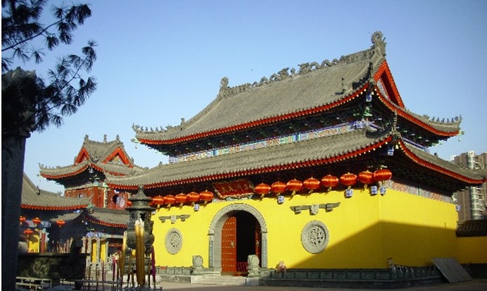 寺院坐北朝南,三層院落,占地三十余畝。前為山門,門楣上懸掛“大法禪林”匾額。山門內塑有哼哈二將,氣象威猛,形體高大,翹首望之,始見其面。東西兩側建有鐘樓、鼓樓。中為天王殿,內塑四大天王巨像,版權所有山東聊城聊之旅國際旅行社有限公司,轉載必究!后為大殿供奉釋迦牟尼、菩薩諸佛。配殿供奉千手千眼佛及魔家四將。寺內整個建筑為棕門灰墻碧瓦,三層大殿高聳巍峨,畫棟雕梁,窮極壯麗。在清代古寺興盛時期,僧侶云集,有僧百余人,是沈陽重要禪林之一??上Ъ壮饺斩碇畱?,毀于兵亂之中,古跡蕩然。現寺院內僅存殿堂兩座,為工廠所用。
