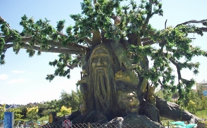 神秘古樹象征著人與自然和諧共處的神秘古樹,其實(shí)蘊(yùn)藏著一段感人的傳說…… 久遠(yuǎn)前,這里曾是一片山谷與密林,所有的動(dòng)物都和諧地生活著。但這里每隔一定的年頭就會發(fā)生自然災(zāi)難,山上的石頭會迸裂開來,洪水噴涌而過,幾乎吞走所有動(dòng)物。年長的動(dòng)物為了躲避災(zāi)難保護(hù)子孫,尋找到一棵幾千年依舊挺拔茂盛、不畏災(zāi)難的古樹。當(dāng)災(zāi)難爆發(fā)時(shí),動(dòng)物們都環(huán)抱著古樹,期望依靠古樹的力量抵御洪水的沖擊。年長的動(dòng)物們卻用自己的血肉之軀緊緊的包圍著古樹與子孫,寧可粉身碎骨也抵抗著迸裂的山石。山洪愈加洶涌,為了組成這個(gè)嚴(yán)實(shí)的“保護(hù)墻”,無數(shù)的動(dòng)物長輩獻(xiàn)出了生命,更有無數(shù)的年長動(dòng)物補(bǔ)充上去。