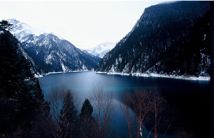 長(zhǎng)海海拔3060米,最高處4457米,面積約200萬(wàn)平方米。長(zhǎng)約8公里,順山彎去,頭深藏在層巒疊嶂的山谷之中,是九寨溝最大的海子。海子對(duì)面,雪峰皚皚,冰斗、“U”字谷等典型冰川景觀,歷歷在目,岸旁林木葉茂,一眼望去,水似明鏡,巍巍雪峰,沐浴在藍(lán)天白云之中,壯觀奇麗。此湖區(qū)水面大,但無(wú)地表出水口,夏秋暴雨,水不溢堤,冬春久旱,亦不干涸。藏胞贊美它是“裝不滿、漏不干的寶葫蘆”。隆冬時(shí)節(jié),冰凍厚達(dá)60厘米,傳有怪獸出沒(méi)。