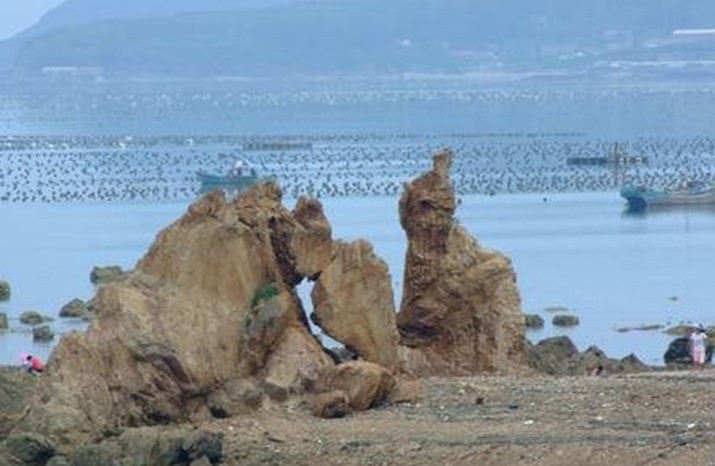 第二天,在大將軍倒下的地方,海水像開了鍋,呼嘯翻騰,忽然立起一塊巨石,人們一看很像大將軍的樣子。他的女兒見了,飛快地撲過去,還沒靠近就僵住了,也化成一塊巨石。人們稱那塊像大將軍的巨石為“將軍石”。父女倆屹立在廣鹿島的岸邊,日夜守衛著寶島。