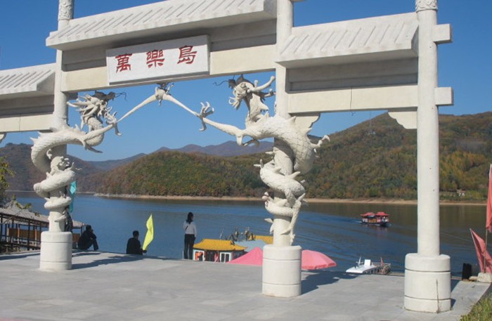 桓龍湖位于遼寧桓仁縣城東北,蕩漾于群山之中,浩浩蕩蕩,碧波萬頃,山奇水秀,風景如畫。 湖中最大的島嶼是面積225畝的萬樂島。因其站在五女山上或從高空鳥瞰,湖水自然形成龍之形狀,故而得名。順渾江而下,桓仁之湖呈“三龍”共戲碧水之態——桓龍湖、回龍湖、金龍湖,“三湖”均以“龍”為名,盤臥于桓仁大地,呈祥瑞之兆;望桓仁時空,群山亦顯龍之形。