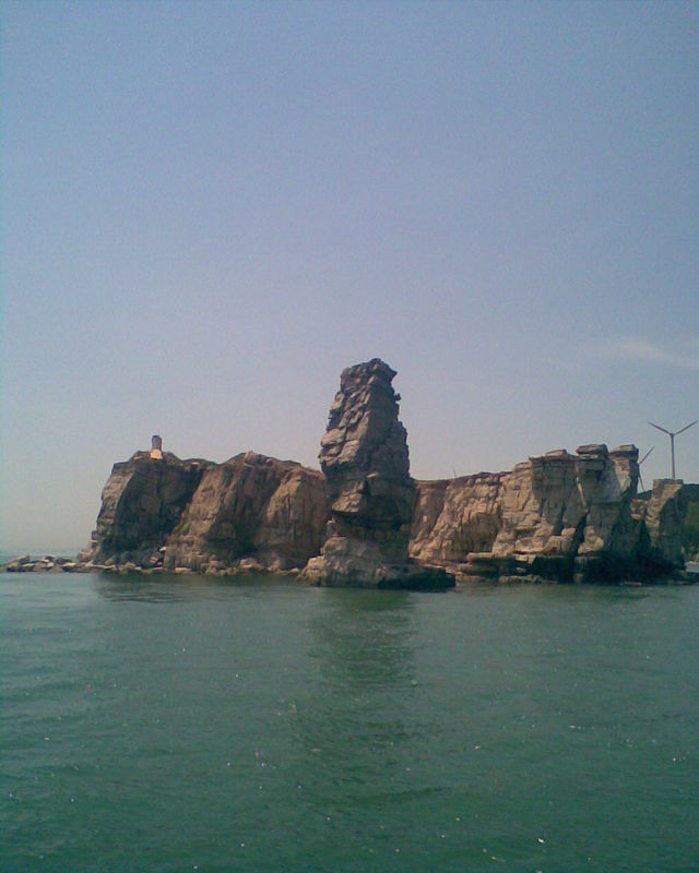 高69.7米,是一綿延幾百米的巨崖,由于千萬年來風浪的侵蝕,石崖漸成了上凸下凹之勢,壁面犬牙交錯,石窟、石穴鱗次櫛比,是眾多水鳥棲息的樂園。