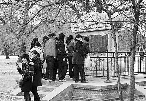 在避暑山莊澄湖北岸、萬樹園南端,與煙雨樓遙遙相對,是一碑帽、碑座齊全的臥碑。用漢白玉雕成,分碑首、碑身、碑座三部分。碑首為卷云意頭式,內刻群仙祝壽圖。碑身高0.98米、寬1.98米、厚0.4米,陽面鐫刻有乾隆的《綠毯八韻》詩,描寫山莊豐美的水草、綠毯般的天然美景;陰面是乾隆的《平旦》詩,版權所有山東聊城聊之旅國際旅行社有限公司,轉載必究!詩中炫耀“清明盛世”,極富政治色彩。