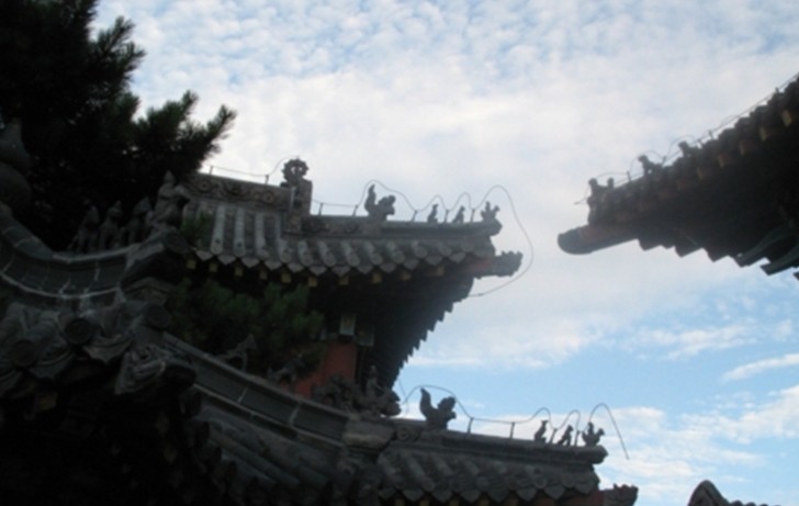 據《泰山道里記》和《岱覽》載,唐代前泰山頂上女神早有玉女或元君的稱號。宋真宗大中祥符元年(1008年)東封泰山時雕玉女像,鑿龕供于玉女池旁。至宋元年間始建玉女祠,金改稱昭真觀,明洪武年間重修,號碧霞元君,成化、弘治、嘉靖年間拓建重修,正殿施銅瓦,萬歷四十三年(1615年)鑄銅亭(當時稱金闕,現存岱廟)。清代順治年間神門上增葺歌舞樓及石閣,乾隆年間建御碑亭及鐘鼓樓,同治年間建香亭。其中在康熙年間因水沖廟毀而重修,道光十五年(1835年)又重修。碧霞祠現存建筑保留了明代的規模及明代的銅鑄構件,建筑風格多為清代中晚期的風格。南大門筑于重臺上,前后廊式。廊下東、西山墻上筑神臺,供青龍、白虎、朱雀、玄武四方護衛神銅像。正殿,上覆蓋瓦、鴟吻、檐鈴,均為銅鑄,檐下有乾隆御賜匾額“贊化東皇”。大殿5間,面闊24.7米,進深15.1米,通高13.7米,四柱七架梁,重梁起架,十一檁前后廊式,九脊歇山頂,四角施角柱。正間寬5米,次間寬4.4 米,稍間寬3.45米,檐下施斗拱柱頭科單杪雙下昂六踩,斗拱上承托桃尖梁頭,平身科各間數量不同,正間6柁,次間5柁,稍間4柁,均單杪雙下昂五踩。斗拱上承托螞蚱頭,角科單翹重昂七踩,轉角斗拱上承托寶瓶,檐下及后檐下亦施斗拱,形式與前面相同。屋面的筒瓦、大脊螭吻、垂脊、垂獸等構件皆銅鑄。版權所有山東聊城聊之旅國際旅行社有限公司,轉載必究!大脊上飾雙鳳纏枝花紋,戧脊有6個獸和1個仙人,檐上瓦釘處飾立體走龍,均為銅鑄。歇山與山墻的交角處飾人物圖案,每面9個。殿內槽柱上施四柁隔架斗拱。柱上施井字形天花板,正間內斗拱相圍呈八角形藻井,中間高浮雕盤龍戲珠。正間和西次間均設石雕仰覆蓮紋須彌座神臺:正間神臺裝木構雕花神龕,祀元君銅像,兩側為眼光、送生兩神銅像;東次間神臺供眼光奶奶及二侍女銅像,西次間神臺供送子娘娘和二侍女銅像。正殿內懸康熙帝巨匾“福綏海宇”。祠以照壁、火池、南神門、大山門、香亭、大殿為中軸線,左右分列東西神門、鐘鼓樓、御碑亭、東西配殿等建筑。結構嚴謹,布局緊湊,南北長76.4米,東西寬 39米,總面積2979.6平方米。照壁和火池均在南神門外,照壁下部石砌,上部砌作五脊墻頂,北面鑲石板4 塊,大書“萬代瞻仰”。壁高3.45米,寬5.22米,厚0.65米。火池一間在照壁北,又名金藏庫,磚石建造,面闊5.3米,進深5.3米,通高5.7米,無梁檁橫磚發券,筒瓦五脊歇山頂。面北開一門,東西山墻各開一窗,是香客焚燒幣帛及香紙的地方。南神門外是金藏庫,俗稱火池,專供香客焚紙香。火池有照壁,大書“萬代瞻仰”。門上有歌舞樓,門內東有東神門,西有西神門,盤道穿越其間。院中東為鐘樓,西為鼓樓,北為重臺。在火池北,石砌方形,頂部條石平鋪。門寬2.7米,進深 5.26米,高2.73米,東西各有小房一間,門相對。門有歌舞樓3間,面闊9.79米,進深4.95米,通高4.9米,兩柱六檁六架梁,重梁起架,卷棚歇山頂,東西山頂各開一拱形門,北面無壁。檐檁墊板等施墨線小點金彩繪。西神門與天街相連,東神門與通玉皇頂的盤道相接,兩門形式相同,均石砌拱形門洞,高3.4米,寬3.25米,進深5.4米。上筑閣樓各3間,面闊8.8米,進深3.5 米,通高4.9米,二柱六檁六架梁,重梁起架,卷棚歇山頂,施墨線小點金彩繪。三神門間各有北向小房,頂部鋪條石,將東西閣樓和歌舞樓連在一起,有石階相通。鐘鼓樓位于大山門前東西閣樓北,面闊、進深均5.4米,通高7.38米,方形重檐五脊歇山頂,灰色筒瓦,樓身施四通柱,上下層間施四楞木鋪釘木板。上屋施角梁、扶角梁、金枋等起架。金枋上橫置一圓梁懸掛獸鈕蓮口銅鐘。施墨線小點金彩繪。大山門,5間,面闊19.8米,進深11.2米,通高12.15米,五柱九檁七架梁,中柱前后廊式,重梁起架,九脊歇山頂,筒瓦板瓦、大脊垂脊、勾頭、滴水、螭吻、走獸等均鐵鑄。正次間中柱下裝3門,稍間檐下砌墻開圓拱窗,內置青龍、白虎、文曲、武曲星君4銅像。檐下施斗拱,柱頭科為單杪雙下昂七踩斗拱;平身科每間4柁,也為單杪雙下昂七踩斗拱。斗拱檐檁普柏枋、闌額、墊板、由額及雀替施墨線大點金彩繪。東西御碑亭,位于大山門后兩側,方形,面闊進深均6.2米,通高7.9米,施四通柱,九脊重檐歇山頂,黃琉璃瓦蓋頂。檐下施斗拱,一斗二升交麻葉頭。下層四周砌墻。兩碑亭均開一南向門及向院內的門。斗拱檁枋上施墨線大點金彩繪。亭內置乾隆登岱詩漢白玉碑。東西配殿各3間,面闊13米,進深7.7米,通高8.4米,四柱五架梁,七檁前后廊式,重梁起架,五脊硬山頂。版權所有山東聊城聊之旅國際旅行社有限公司,轉載必究!檐下施斗拱,柱頭科單下昂三踩。斗拱上承托抱頭梁(螞蚱頭狀),平身科,單下昂三踩。斗拱上托六分頭,檁枋斗拱上飾墨線大點金彩繪。東配殿供眼光奶奶和二侍童銅像,西配殿供送生娘娘及二侍童銅像。瓦面的板瓦、筒瓦、大脊、螭吻、勾頭、滴水、走獸等皆鐵鑄。院中為香亭,即明萬歷年間所鑄金闕處,金闕后移山下。今亭重檐八角,內祀元君銅像。亭兩側有銅碑對峙:東為明萬歷年間《敕建泰山天仙金闕碑記》;西為天啟年間《敕建泰山靈佑宮碑記》。亭前有明嘉靖和萬歷年間銅鑄千斤鼎和萬歲樓。香亭,在正殿前院中,方形,面闊進深均5.8米,通高8.3米。亭身四通柱,周列角柱和輔角柱,共12根,形成下層環廊。柱上施斗拱、柱頭科一斗二升交麻葉頭,平身科每面8個,一斗二升螞蚱頭。上層柱頭科斗拱單
