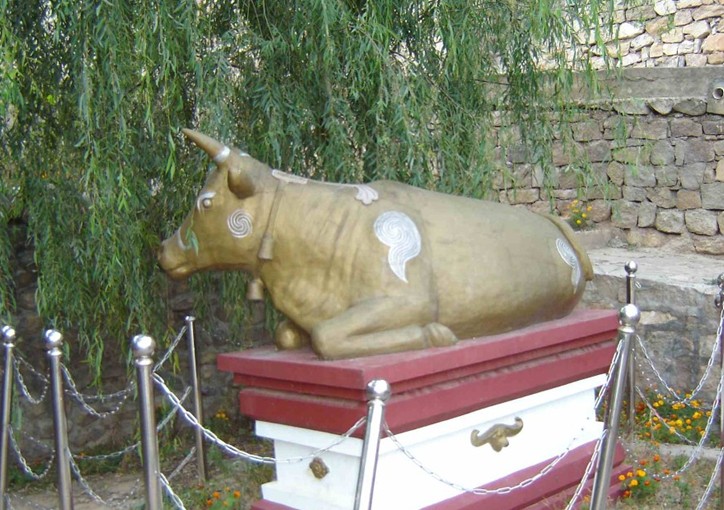 金牛洞景區緊鄰度假村,位于霧靈山南麓,東梅寺山上。該洞為天然巖洞,分上、中、下三層,并有部分巖溶發育,根據專家考證洞形成于14億年前的中遠古界,是世界上目前發現距離山頂最近的巖溶洞穴。同時這座被稱為“古式奇洞”的巖洞還是明朝“大乘天真圓頓教”避難及教主撰寫《龍華經》之地,洞中至今仍有佛像多尊和撰經臺等物。并有數條大大小小巖洞,如“地道戰”般迷亂。洞內有“北斗七星”、“北海神龜”、假村服務設施齊全,別具特色:有普間、標間、高套間小別墅,有4人同住火炕或高間,有日式榻榻米,有蒙古包、水床等,可同時接待400人住宿。有室內游泳池、垂釣園、射箭場、匹特博射擊場、桑拿、狩獵、攀冰、舞廳等設施。有玫瑰園、梨園、杏園、紅果園、板栗園等供游人觀賞、采摘、娛樂。有燃篝火、烤全羊、烤肉串、聽大鼓、唱卡拉OK、跳集體舞、獻哈達等娛樂項目。游人在這里不但可以向農民一樣盤坐炕上吃飯,還可以自己動手做飯和參加農事和采摘活動。
