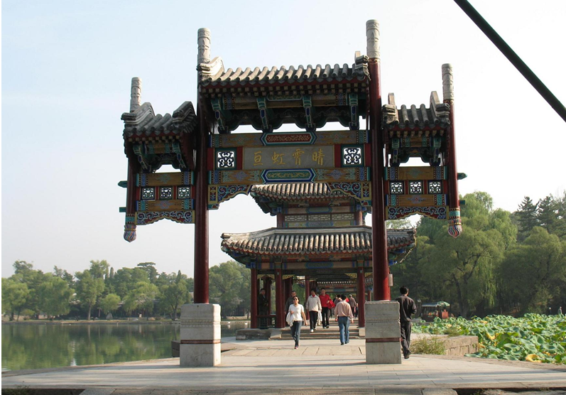 在避暑山莊東宮的最北部。是宮殿區與湖區的重要通道。建于康熙四十八年(1709),初建山莊時,這里只是湖區界墻上的出水閘。山莊擴建,在下湖與銀湖間架石為橋,橋上建筑了一座亭榭。