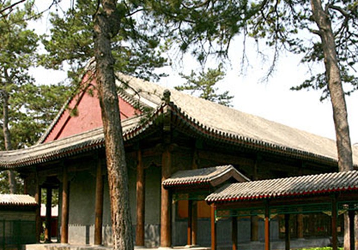 在麗正門北,是避暑山莊正殿。此殿規模宏大,殿前有外、內午門,朝房、樂亭,后有四知書屋、寢宮等 建筑。內午門為清帝每年到承德木蘭圍場進行秋獵時舉行小型閱射之所,門上懸有康熙我御書“避暑山莊”四字匾額,東西兩壁是乾隆御制《閱射六韻》詩刻石。殿建于清康熙四十九年(1710),乾隆十九(1754)全部用楠木改修,故又稱楠木殿。面闊7間,單檐卷棚歇山頂。殿內懸康熙御筆“澹泊敬誠”匾額。建筑用料木質精良質硬,專門用來舉行重大節日慶典活動。即放棄此。此殿收藏古今圖書大全一萬余冊,纂于康熙雍正年間,涉及天文、地理、社會、哲學、藝術、美學及倫理等方面。