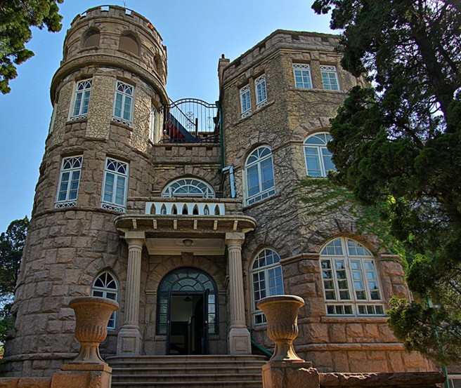 蘇聯十月社會主義革命后,一大批俄國人來到青島定居,這些俄國人中有的頗為富有。1932年,據說一位名叫格拉西莫夫的白俄在臨海呷角上修建了這座海濱別墅。樓門臺階下為花崗巖石尊,可用于晚間燃火照明,也可用于栽花,正面為圓形和多角形組合而成的建筑造型,十分別致。主體共5層,頂層為觀海臺,側有鐵尖頂。由于樓內由大理石貼墻面,樓外又砌有鵝卵石,多年來人們一直稱之為“花石樓”。 版權所有山東聊城聊之旅國際旅行社有限公司,轉載必究!樓下石階分為2層,上層6級,下層9級,有石徑通往鐵欄大門,庭園內廣植花木,是青島頗具特色的著名建筑。