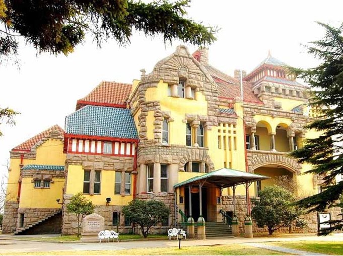 青島迎賓館始建于1905年,1908年正式竣工使用。主樓高4層,附樓高4層,是當時占領青島的德國提督官邸,故名之總督官邸,俗稱“提督府”。它由德國建筑師拉查魯維茨設計。迎賓館是一座典型的歐洲古堡式建筑,是德國威廉時代的典型建筑式樣與青年風格派手法相結合的歐式建筑。內部布局典雅華貴,氣派不凡,置身其中可享受到濃郁的歐洲宮廷氣氛,迎賓館又是一座博物館,收藏著東西各國的稀世珍品。
