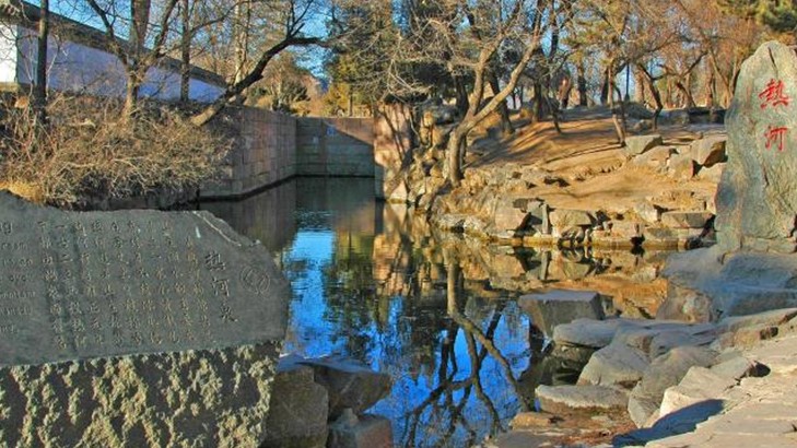 位于避暑山莊湖區東北隅,是山莊湖泊的主要水源。清澈的泉水從地下涌出,流經澄湖、如意湖、上湖、下湖,自銀湖南部的五孔閘流出,沿長堤匯入武烈河。熱河全長700多米,在一般地圖上找不到它有蹤跡。它是中國最短的河流。熱河發源于避暑山莊諸泉的一條涓涓細流,主要水源來自熱河泉。冬季水溫為8℃。泉側有巨石,刻“熱河”兩字。