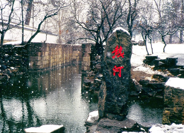 熱河泉是山莊極為重要的景觀要素、湖區的主要水源。春天,澄湖位于泉水的源頭,澄澈見底。夏天,浮萍點點,泛起陣陣清香。節令過了白露、霜降,泉水融融,水溫高于一般水體,湖中的荷花仍與秋菊同放異彩,乾隆皇帝因而寫道:“荷花仲秋見,惟應此熱泉。”雖值隆冬,仍不見冰,景色幽絕;盡管白雪皚皚,這里卻藻綠水清,碧水漣畸,春意盎然。是熱河泉把春天留在了山莊。