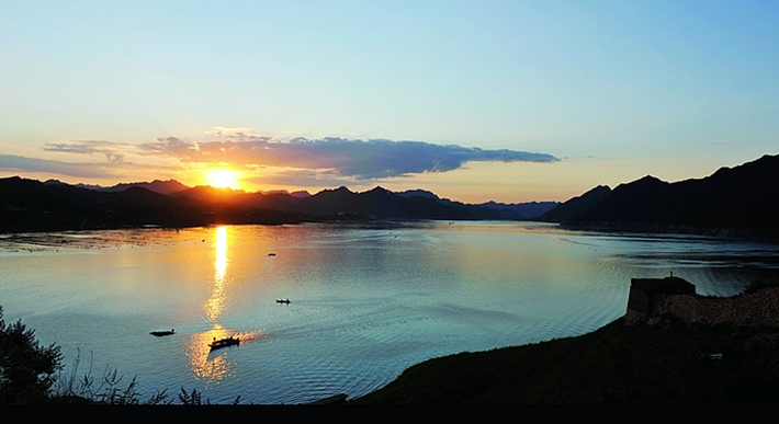 塞外蟠龍湖旅游風景區(潘家口水庫)位于承德市寬城滿族自治縣西部,距寬城縣城25公里,距承德市區135公里。她是一個由10萬畝水域,150平方公里的生態山場和明代長城景觀組成的風景區。是因國家重點“引灤入津”水利樞紐工程--潘家口水庫的建成蓄水而形成的人工湖。因空中鳥瞰湖面恰似一條巨龍婉蜒游動而得名。塞外蟠龍湖是鑲嵌在燕山深處、長城腳下的一顆燦爛明珠,也是承秦朝陽旅游線上的一段“黃金水道”,它集人文景觀與自然景觀于一體。來到景區,自湖邊入口登船,緩緩前行,好一派江南水鄉風光。小蓬萊島有如仙境,若隱若現;蛤蟆石、烏龜島時起時伏;一線天、蟠龍洞、十里畫廊鬼斧神工,如在畫中游。山一重,水一重,柳暗又花明。版權所有山東聊城聊之旅國際旅行社有限公司,轉載必究!聞名天下的潘家口水上長城和喜峰口水下長城雄偉而壯觀。古老的灤河水擁關漫隘,紫塞青峰倒映水中,湖光山色交相輝映。喜峰口水下長城是景區的精典之作,長城主體部分淹沒水下,僅有局部關城露出水面,淹沒水下的部分墻體隱約可見。長城沿關城東西兩側出水往山脊延伸,這在長城人文景觀中可謂獨具特色。這里有歷代詩文碑林,有喜峰口來歷的動人傳說,有姜文執導并主演的電影《鬼子來了》外景基地。原汁原味的長城風貌,使這里成為一個開放式的長城博物館。這里的長城使您每到一處都能觸摸到千年歷史,遙想當年金戈鐵馬,鼙鼓滄桑,低吟一首《飲馬長城窟行》;目光搜尋著城墻的道道彈痕,耳畔響起抗日炮火的轟鳴,一曲雄壯的《大刀進行曲》引您穿越時空,領略當年長城抗戰大刀隊勇士們的風采,民族精神,中華之魂令人振奮不已。