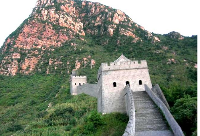 (四)內(nèi)地罕見的古長城:有詩曰:“不到長城非好漢”。不少人因為沒有機會一睹北京城外古長城的雄偉風采而遺憾。但太平寨為你提供了一個游覽古長城雛形的機會。太平寨的古長城修在與太平山相毗鄰的群山頂部,全部用石料砌成,高約2米,寬約1.5米,連綿10余華里,其氣勢雄偉壯觀,在內(nèi)地實屬罕見。至于太平寨的古長城始建于何年,為何而建,特別是有幾處古長城修建在懸崖峭壁處,版權(quán)所有山東聊城聊之旅國際旅行社有限公司,轉(zhuǎn)載必究!那重量過千斤的大石塊,這在當時是如何運上山的,又是如何建的,目前尚無證可考。太平寨有多井字形拱券結(jié)構(gòu)敵樓六座、墩臺一座、登城便門一座。登城便道有一個小甕城,甕城內(nèi)周圍鐫修長城贊助碑,碑上鐫刻捐資贊助修復長城的單位、集體和個人名單。甕城前廣場兩側(cè)土崗上,塑有高8.5米的明末戍邊修城名將、薊州總兵戚繼光花崗巖塑像,身著戎裝,氣宇軒昂。甕城西面三岔墻,有一段向外延伸30多米,設(shè)一敵臺,稱哨樓。三岔墻水洞處,城墻突然下伏,繼而又隨山勢插入云霄。長城最西端有一方形石樓,名寡婦樓。傳明隆慶年間戚繼光曾征調(diào)河南軍士繕修長城樓臺,時有 十二名婦女結(jié)伴尋夫捐資修建了這座敵樓,后人傳稱為“寡婦樓”。樓兩層,高13米,四大磚柱將樓隔成四個拱形大廳,四面有拱券箭窗。樓上層建有長方形小屋,西端裝飾龍頭,四面有檐角蹲伏陶制麟、鳳、獅等動物模型,四周筑雉堞垛口。長城內(nèi)側(cè)有一墻圍子,名“養(yǎng)馬閣”,為古代養(yǎng)馬處。