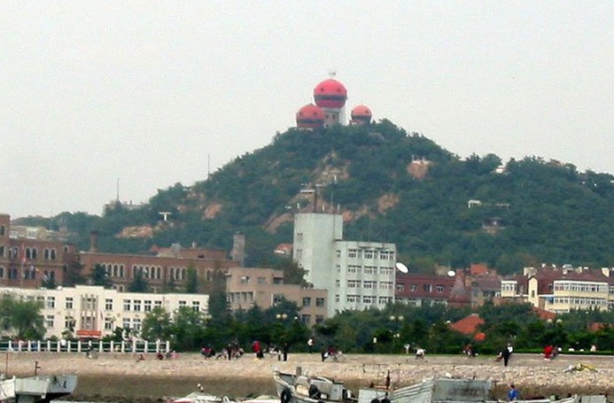在基督教堂東側,有一座海拔110米的山峰,版權所有山東聊城聊之旅國際旅行社有限公司,轉載必究!山勢峻峭,怪石嵯峨,山上遍植花草綠樹。霧靄浮動之時,青翠欲滴。山坡上,造型優美的亭、臺、樓、閣黃白分明,點綴其間;石階小徑,曲折回轉,婉蜒于林蔭之下。更有山巔的3幢紅色的蘑菇樓,宛如3柄火炬,屹立于滿山青黛之中,十分奪目。這個以歐式風格規劃建設的公園因山得名,即信號山公園。