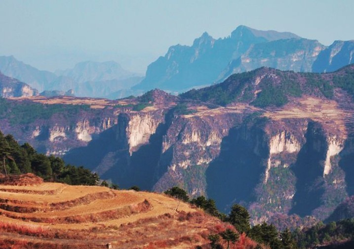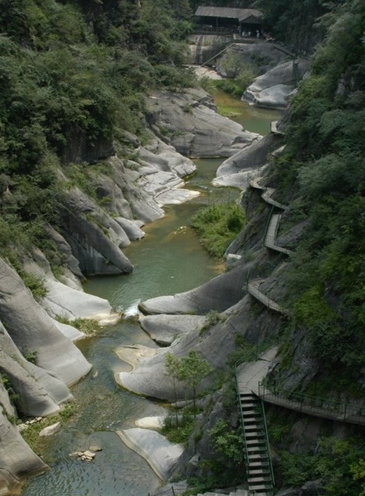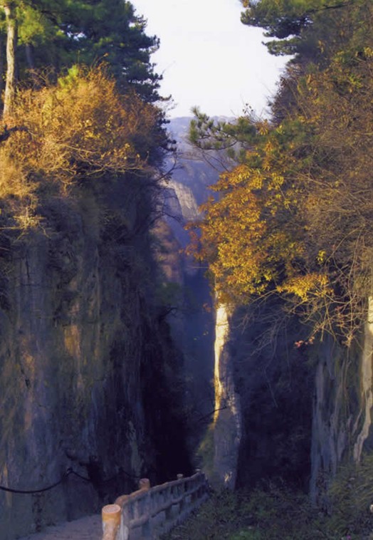 《太平御覽》講:“抱犢山,在上黨東南,高七十丈。” 《隋圖經》則說:“抱犢山四面危絕。”公元4世紀初時,我國兩晉時期著名的道教神學奠基人葛洪(自號抱撲子)曾遍游天下名山。他對太行懷抱中的抱犢山評價甚高,以為“稱天下名者,南有武夷,北有抱犢。”把紫團山與武夷山相提并論,這對當代人來講,無論如何是無法想象的事情。因為今天的紫團山其名聲不但已遠不如聲名顯赫的南國武夷,僅以武夷九曲溪那樣秀麗可人且可乘舟游弋的水景而言,即使走遍今日太行峽谷中的每個角落,恐怕也難以覓得一處了。然而,再把話說回來,你如果真是一個對紫團山的歷史有所了解的人,特別是對它的地形地貌做過實地踏勘的人,你則會毫無猶疑的確信,確信葛洪在1500余年前所說的那一番話不但語出事實,而且語焉甚確,毫無夸張。現在武夷九曲溪水及其所經山峽長度約近8公里,歷史上可能更要綿長些;但紫團山峽中的河床谷地其長度絕不在20公里以下。根據歷史上遺存地貌的觀察分析,古代武夷九曲溪和紫團山峽流景觀的主要區別應該在于,武夷九曲溪河谷趨于平緩開闊,而紫團峽流由于峽身緊束,區段落差極大,所以后者比前者肯定會流速迅疾,景色險奇而壯觀。在溪流盤曲環繞、岸側景色變幻無窮這一點上,兩處名勝則是相似相近的。
