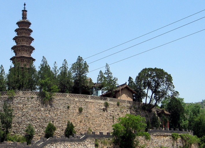 原起寺位于潞城縣城東北20多公里處的鳳凰山頂。始建于唐天寶六年( 767),比較完好。四周磚砌花欄圍墻,院中佛殿三間,規模不大,琉璃九脊屋頂,飛檐斗拱,古樸雅致,具唐宋風貌。殿西是北宋元佑二年(公元1087年)建造的大圣寶塔,俗稱青龍寶塔,平面呈八角形,塔身七級,高約17米,挺拔俊秀。塔頂置四對鐵人。寺院豎有八角青石經幢,鐫刻陀羅尼經和建寺銘記。殿前一座方形香亭,小巧玲戲,由四根石柱支撐,結構簡練,古色古香。登寺遠眺,群山環繞,郁郁蔥蔥,俯視漳河,塔寺倒影依稀可辨,西望村舍,炊煙縷縷,別有情趣。