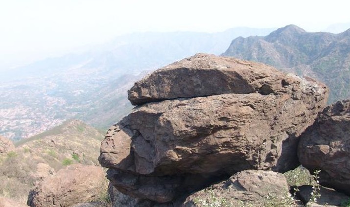 摩訶山峻峰雄峙,大壑深澗,巨石危巖,奇險莫測。頂峰聳入云中,舊曾建有塔和禪院,皆失無考,僅存遺址石墻,尚能勾起人們對其原貌的想象。據傳山頂寺中,原有一小和尚,腦力遲鈍,數日僅學“摩訶”二字。冬天,和尚們下山募化,僅留其守寺,不留食物,待月余歸,但見小和尚仍面色紅潤,問其,則曰:口不絕吟“摩訶”,饑則煮石,食之甘美。“摩訶”山名即由此而得。