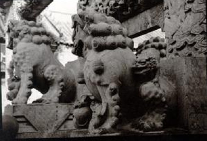 百獅坊俗稱張家牌坊。位于牌坊街中段。1778年為贈文林郎張蒲妻朱氏而建,全石結構,高14米,寬9米,四柱三間五樓式,正間單檐、次間重檐、歇山頂、 斗拱交錯,戧角起蹺,通體雕刻。正間樓檐下六朵斗拱,次間上下檐下各三朵斗拱。全枋上下間架有致,搭配均衡,雕刻的獅子、云龍、牡丹、吻獸、象尊等,均惟妙惟肖,栩栩如生,剛柔相濟,神態協調。
