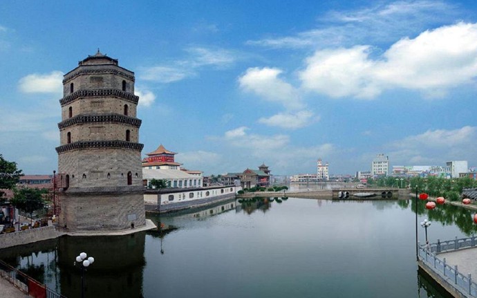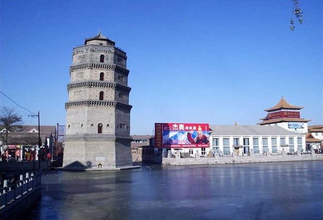 永豐塔 位于巨野縣城東南角,南臨人民路,北距文廟百余米,西面不遠(yuǎn)是永豐街,東面緊靠縣招待所,是縣級(jí)重點(diǎn)保護(hù)文物。始建于五代后周(公元951-960年),至北宋年間(公元960一1127年)才建成。塔為磚石結(jié)構(gòu),高30米,為七級(jí)八角四門(mén)樓閣式,上層周長(zhǎng)36米,下層周長(zhǎng)44米,塔尖為圓型亭式磚木結(jié)構(gòu),高1.85米,青瓦覆蓋。地面上現(xiàn)存5層,底部2層已淤于地下。