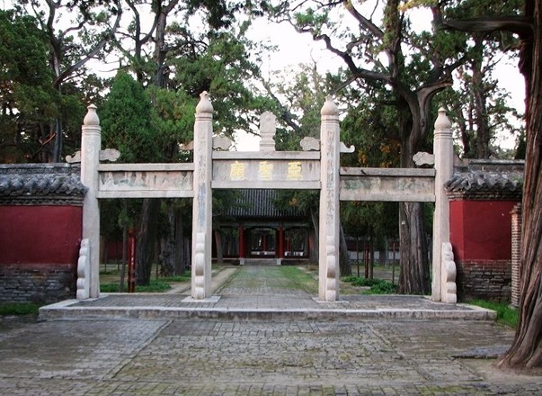 穿過亞圣廟石坊,便進入孟廟第二進院落。院內古柏蒼蒼,翳天蔽日,雖歷經滄桑,依然枝干挺拔。院中有一條磚鋪甬道,直通“儀門”。這是一座歇山式斗拱承托三啟門洞的高大門樓。門額上懸一豎匾,版權所有山東聊城聊之旅國際旅行社有限公司,轉載必究!上書“泰山氣象門”5個大字。故儀門又稱泰山氣象門。“泰山氣象”4字取義于程子之說:“曰仲尼元氣,顏子春生,孟子并秋殺盡蓋亦時然而已。仲尼天地也,顏子和風慶云也,孟子泰山 之氣象也。”此門之名即由此而來。