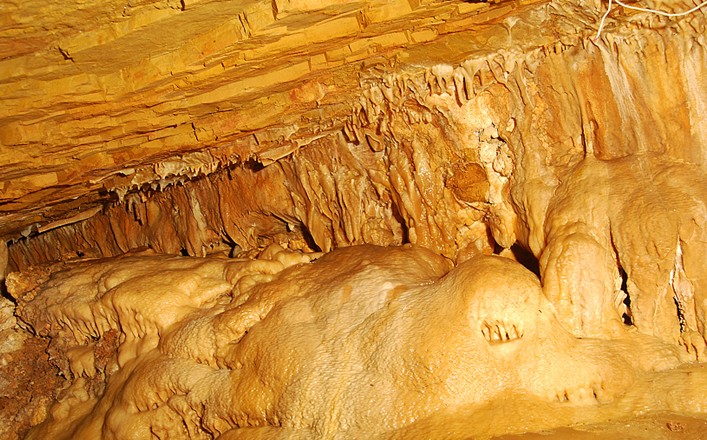 位于山東蒙陰縣城南部10公里處的桃墟鎮(zhèn)杏山村。此洞是杏山村民在1994年1月6日修建房屋采石時(shí)發(fā)現(xiàn)的。洞門是從溶洞中間炸開的,兩頭深不見底,有待于進(jìn)一步開發(fā)建設(shè)。現(xiàn)已開發(fā)360多米,并已于1994年12月17日正式向游人開放。天然雕飾的杏山溶洞,洞內(nèi)鐘乳石千姿百態(tài),十分壯觀。