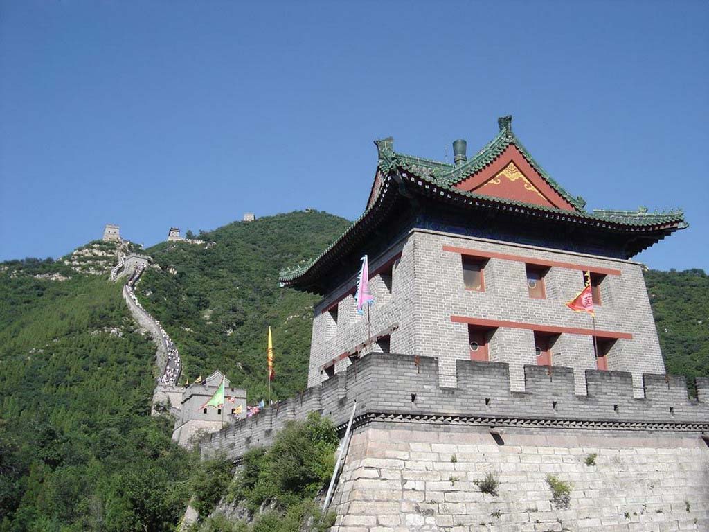 4.軍事防御范圍廣,周圍面積50多公頃,南北券城相距約850米左右,東山頂至西山頂直線距離1150米,防御設(shè)施有南、北券城、城樓、水門、水閘、敵樓、鋪房、烽隧、角樓、炮臺等。長城上的敵樓、烽燧、鋪房,是古代打仗時作為掩體和士兵居住的地方,共修復(fù)了25座,這些按明代規(guī)制燒的城磚,都是靠人工、牲畜往上運送材料。高大雄偉的城樓,南北各有一座,樓為三重檐歇山式綠琉璃瓦翦邊,高21米,下面城臺高10米。城樓是指揮作戰(zhàn)的中心,所以建造高大。站在樓上,可以一目了然,有利于觀敵情。城臺下面有券門通甕城。甕城即大城門外的月城,用以增強城池的防御力量。