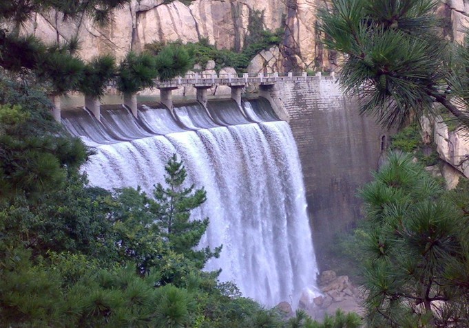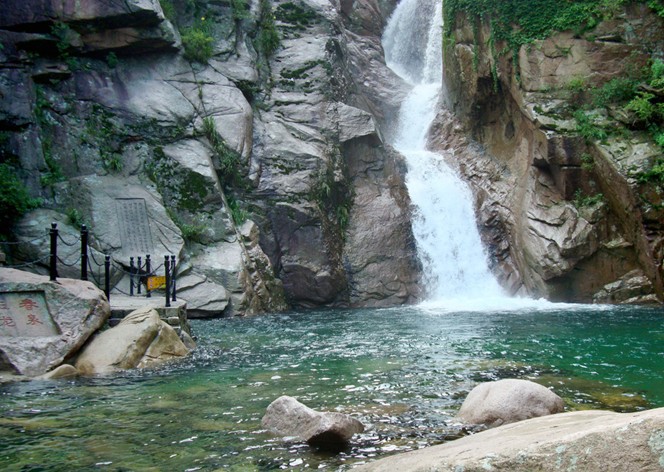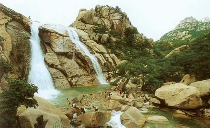 又稱玉龍瀑。在嶗山南部八水河中游,北距上清宮約1公里。周圍巖壁峭立,八水河至此,沿20米高、10余米寬的絕壁懸空倒瀉,噴珠飛雪,狀如玉龍飛舞。瀑布落下十幾米,與石壁相擊,分數股跌入潭中。碧水凝寒,清澈見底,潭旁巨石上鐫“龍潭瀑”三字。大雨過后,山洪暴注,飛騰叫嘯,更為壯觀,故有“龍潭噴雨”之稱。周至元有詩贊曰:“凌空亂濺沫,疑是玉龍飛。白掛虹千仞,青山環一圍。拋來珠落落,舞處雪霏霏。游客貪清賞,斜陽不忍歸。”