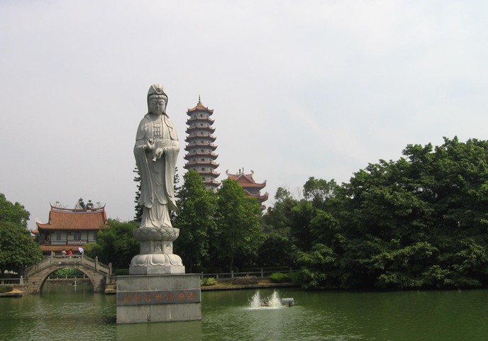 西禪寺名列福州五大禪林之一,為全國重點寺廟,位于西郊怡山之麓,在工業(yè)路的西邊,比鄰于福州大學的南側,巍峨而壯觀。門票20元、學生票10元。古剎大門坊柱上鐫刻一副楹聯(lián):“荔樹四朝傳宋代,鐘聲千古響唐音。”這是清代周蓮撰寫的聯(lián)句,點明"西禪寺"是唐朝的古寺。