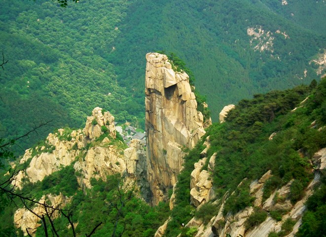 扇子崖位于泰山西溪西側(cè)的扇子崖,奇峰突兀,高聳峻峭,形如扇面,故名。崖上有明人楊博題刻摩崖石刻“仙人掌”。崖西有鐵梯,攀援可登崖巔,北眺龍角山,九女寨歷歷在目,西望傲徠峰盡收眼底。向東俯視,龍?zhí)端畮焱鹑翳偳对谖飨囊活w璀璨的明珠,閃閃發(fā)光。清人孫寶僮有詩云:“劍峰怒刺天,積鐵拔千仞;俯臨鬼谷幽,旁倚丈人峻”,的確寫出了扇子崖的風(fēng)韻。扇子崖峰極險(xiǎn)峻,赤眉軍曾就頂設(shè)望哨。明代舉人王無欲筑室崖巔,后又結(jié)茅其下,名西山別業(yè)。民間有“打開扇子崖,金銀財(cái)寶往家抬”的傳說。1990年,依崖鑿階,修筑云梯,以便攀登。[1]峰崖交接處為山口,前有扇子崖廟,殿西有地母宮,再西為太陽廟。自正殿前沿階下谷,有真武洞,清光緒年間建,題額“玄天上帝”,內(nèi)祀真武神及金童玉女。前為會(huì)仙庵舊址,今房基、石廟尤存。又東路旁有巨石,上有清康熙初年線刻一老僧坐蓮修身。廟南隔溪相望有弄水巖,雙峰崛起,澗水東流,至西百丈崖下注西溪。山口后是長谷絕澗,名青桐澗。版權(quán)所有山東聊城聊之旅國際旅行社有限公司,轉(zhuǎn)載必究!明清時(shí)山民多在此采青桐芽制茶,名女兒茶。澗北有壺瓶崖,危崖萬丈,突兀類壺瓶狀而名。