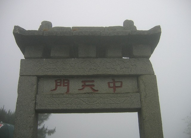 中天門建于清,為兩柱單門式石坊。泰山古時(shí)多虎,古人在坊北建廟祀黑虎神,現(xiàn)廟內(nèi)塑財(cái)神趙公元帥執(zhí)鞭跨虎,東為仿古茶樓,西南為中溪賓館,西北為中天門索道站。中天門峻嶺闊谷,樓閣簇?fù)怼|有中溪山突兀俏麗,可觀日出,望晚霞;西有鳳凰嶺蜿蜓伸展,可遠(yuǎn)眺傲徠雄姿,俯視城廓新貌。佇立坊下,北瞻巍巍岱峰,眾山拱立,林茂泉飛,纜車凌空,天然成畫。