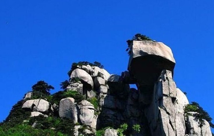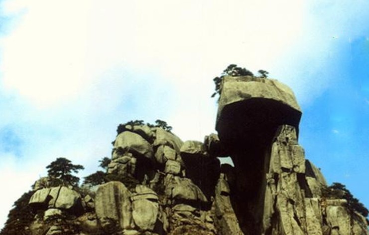 再往前走,有塊大石頭,叫“紗帽石”。長約10米,寬、高約8米,極像古裝戲中士大夫所戴的烏紗帽。相傳從明朝永樂年間開始,歷朝歷代,都有達官貴人騎著馬,坐著轎,專程前來焚香朝拜,以求加官晉爵,據(jù)說有求必應呢。從這順著臺階,可以到達天門臺,沿路步移景換,美不勝收。自天門臺、“結義松”上行50米,就到了拜佛臺,這是游人能夠登上的最高點,海拔1460米。站在這里,險峻的正頂已近在咫尺,仿佛舉手可及,卻又險不可攀,至今還無人登臨。向前看去,那就是“天生石佛”,你看他天庭飽滿,雙眼微合,鼻梁中挺,還有那豐盈的下巴和靈秀的頸項,一副慈眉善目的富態(tài)之相。當雨后初晴,偶爾會出現(xiàn)一道七彩虹,籠罩在大佛的頭頂上,那就是神奇的佛光,是石佛顯圣的吉祥征兆。過去,不論什么人,只要看到佛光,便要立刻下拜,因為看到它極不容易,所謂有緣者方可一見,“拜佛臺”亦由此而來。在拜佛臺上舉目四望,東南方的天柱山,西向的司空山,北面的明堂山,還有大大小小的峰巒丘壑,都盡收眼底,豪邁之情油然而生。