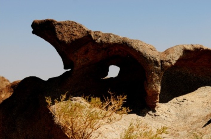 海森楚魯怪石城位于阿拉善右旗努日蓋蘇木境內,距旗府所在地220公里。“海森楚魯”為蒙語音譯,意為象鍋一樣的石頭。在方圓二十余公里的地方,大到幾十立方,小到拳頭大小的風蝕原石隨處可見, 怪石林立,形態各異,有象臨空欲飛的碩大雄鷹,有象“蘑菇云”……各式各樣,栩栩如生,與云南石林,黃山怪石相比也并不遜色,使人感到大自然神賜般的無窮魅力。