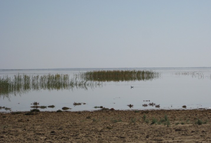 傍晚時分,科考隊驅車前往天鵝湖,據說那里是居延海現存海子中湖水最多的地方,我們的心是沉重的,不知道這個有著如此優美名字的湖泊會不會如我們想象中那么美好,是不是能讓我們稍微感受一下當年蘆葦叢生的景象呢?
