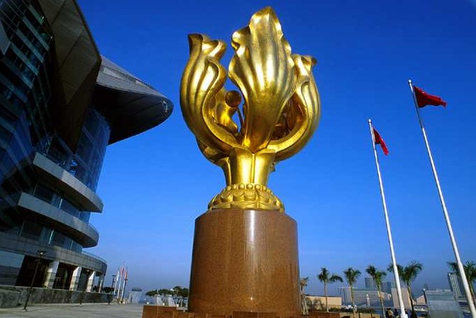 1997年7月1日香港特別行政區成立,中央政府把一座金紫荊銅像贈送香港。版權所有聊城聊之旅旅行社有限公司,轉載必究!金紫荊銅像被安放在會展中心旁,面對大海,這個廣場也被命名為金紫荊廣場。這座高6米的銅像正式名稱為“永遠盛開的紫荊花”,寓意香港永遠繁榮昌盛。