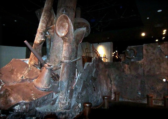“定遠”級軍艦的生活區主要集中在主甲板下的第一層,簡稱下一甲板。下一甲板的艦首部位,是一間面積較大的西式軍醫院,置有手術臺、病床等設施。軍醫院與鐵甲堡之間,分布著廚房、禁閉室、警衛室等功能艙室。進入鐵甲堡區域后,首先在地板上會看到有6個大型的艙蓋,下面是全艦的彈藥庫所在,彈藥便是從這里提升出來后,運往全艦各炮位的,與之配套,在下一甲板的天花板上裝有軌道和天車,用于提升和運送彈藥。過了彈藥艙出口,有2個巨型曲軸搖臂,數十名水兵將通過轉動這2根搖臂來驅動甲板上方的4門305毫米大炮。再往后走,整個區域被煙囪豎井和發電機房占滿(“定遠”配備3臺發電機、“鎮遠”只有2臺),中間零散布置著官兵們的浴室。走過這個區域便出了鐵甲堡進入艦尾,沿襲帆船時代的傳統,艦尾是軍官們的生活區域。這塊區域的中央是2間軍官餐廳,這是軍官們用餐、聚會,以及娛樂交際的場所,里面放置著鋼琴、酒柜、餐桌,并與西方軍艦敬奉圣像一樣,這里供奉著中國的戰神——關公的牌位,另外還擺放有做工精細的“定遠”級軍艦原廠模型,黃海海戰前的軍事會議便是在這里召開的。在會議室外面,兩側則分布著各個軍官的住艙,艙門上的歐式銅牌表明了一間間艙房的功能。軍艦最后面的空間整個都是屬于艦長的,里面包括艦長的辦公室、臥室、浴室、個人的會客室等等,整個區域裝修異常豪華。艦長會客室的墻壁上釘著一塊橢圓形的銅牌,版權所有山東聊城聊之旅國際旅行社有限公司,轉載必究!西式的繩紋圍繞著漢字“定遠”/“鎮遠”。相對于軍官,普通水兵們的生活空間要可憐得多,他們并沒有專門的休息場所,吃飯、睡覺、工作都在同一地點。為滿足海上航行時的生活需要,“定遠”級軍艦艙內設有20座淡水爐,海水淡化機每日制造出的淡水能供應全艦300余人使用。