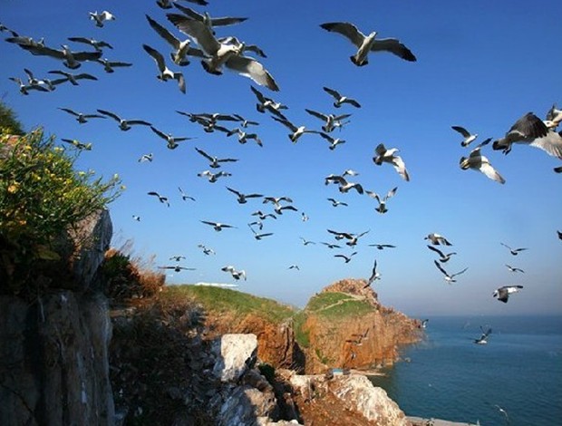 海鷗大量繁衍生息在海驢島,是與島的自然條件和特殊地理位置分不開的。每當(dāng)清明過后,即是海鷗的產(chǎn)卵時期。產(chǎn)卵后月余開始孵化,這時海鷗很少離窩,即使人們?nèi)ペs它,它也不愿離開。所以,海驢島上的海鷗,棲息在島礁巖縫中的多,而飛翔在天空中的少。只可異現(xiàn)在有不少不愛惜鳥類的人,常常攜筐提籃前來海驢島拾海鷗蛋,驚起海鷗四飛,哀鳴陣陣。長此以往,必將使海驢島這個海鷗的世界化作一片荒寂。