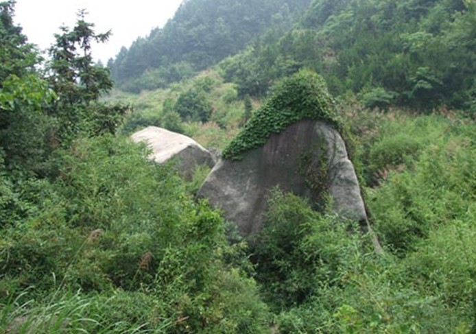石船或曰船石,在白云崖下澗溝中,石長(zhǎng)20余米左右,寬、高均在10米左右,船首、船身、船尾、船倉(cāng),輪廓畢具,線條分明;似經(jīng)起重機(jī)吊起,有意墊放幾塊小石于其下,淙淙泉水自船底流過,欲濕不濕;船頭高翹,氣宇軒昂;船前溝壑陡落千丈,大有潮生即發(fā),直瀉江河之勢(shì)。