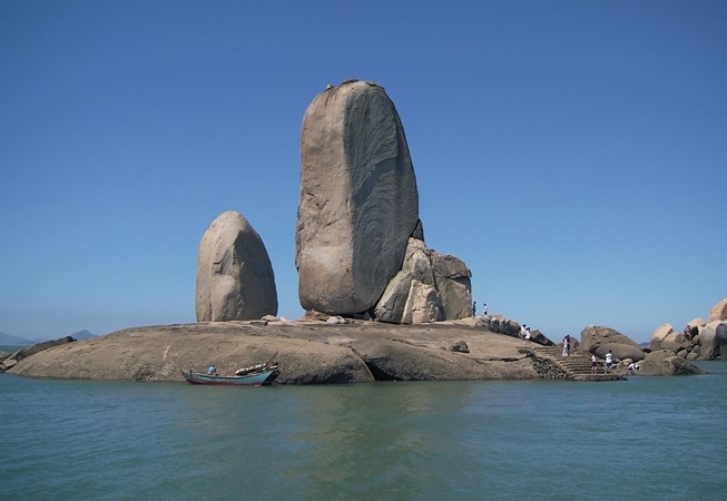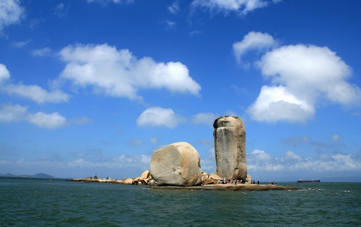 從看澳村岸邊坐渡船,十幾分鐘就到達(dá)礁石上,礁石底部是一組平坦完整的巖石。兩個石柱均由粗粒灰白色的花崗巖組成 東側(cè)的一個高達(dá)33米,胸寬9米,厚8米;西側(cè)的一個高17米,胸寬15米,厚8米。版權(quán)所有山東聊城聊之旅國際旅行社有限公司,轉(zhuǎn)載必究!兩個石柱的底部都是近似四方形體,直立在礁石上。據(jù)地質(zhì)學(xué)家考證是世界上最大的花崗巖球狀風(fēng)化海蝕柱。由于它的奇特壯觀,對游人有著強(qiáng)烈的震撼力和吸引力。建設(shè)部與中科院的專家稱之為:“壟斷性的世界級旅游資源。”明代旅行家陳第曾譽(yù)之為“天下奇觀”, 清朝女詩人林淑貞詩贊:“共說前朝帝子舟,雙帆偶趁此句留;料因濁世風(fēng)波險,一泊于今纜不收.