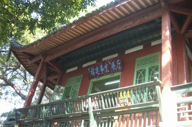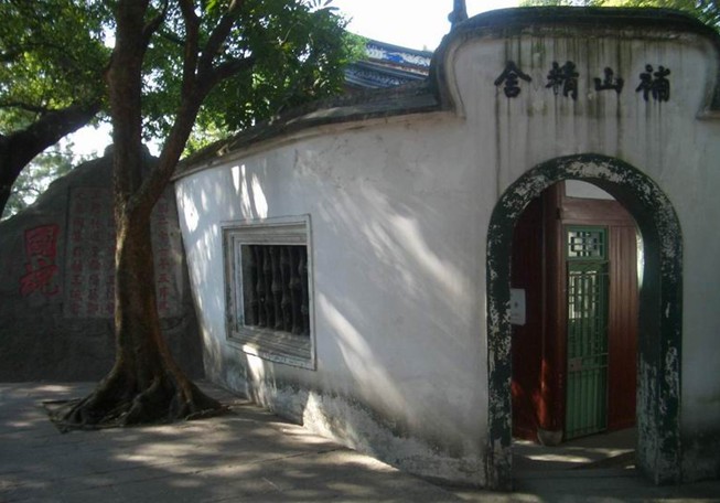 在于山白塔寺東,位于榕壽巖上,巖石上有多處題刻。始建于北宋,是白塔寺接待賓客之場所。現存為清道光年間(1821-1850)重建。亭閣式建筑,單開間九脊頂,龍頭翹角,雕梁畫棟,周廊欄桿纖巧,建于高臺之上。東傍補山,巖石突兀;西有巨榕生自隙,綠蔭覆舍,依山筑垣,將古建筑藝術與書法藝術、樹根藝術融為一體。1933年秋,十九路軍蔡廷鍇、蔣光鼐等將領曾在此召開秘密會議,發動反蔣“閩變”。