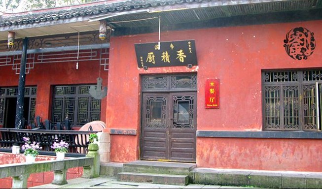 許多規模比較大,歷史比較久遠的寺廟廚房的名稱。大雄寶殿右側為香積廚,是寺僧的齋堂。香積廚中有洗碗、洗菜用的石池、石槽,是宋朝天圣年間制造的。做飯用的四口大鐵鍋,也是該寺的“三鐵”之一。其中最大的一口鍋,口徑達1.57米,深0.80米,煮一次飯需放5包大米、1噸水,可供千人食用,是世上罕見的“大鍋飯”。 版權所有山東聊城聊之旅國際旅行社有限公司,轉載必究!飯熟后,鍋底沉結一層鍋巴,酥香可口, 算是涌泉寺的特產之一。