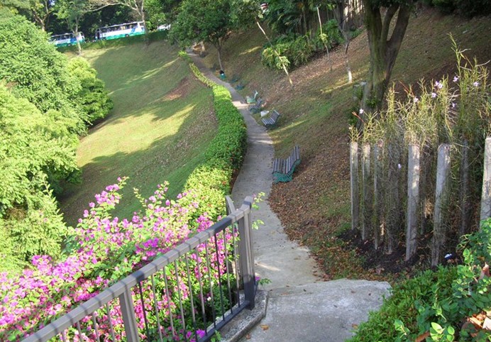 沿有三個(gè)池塘,林蔭羊腸小徑貫通各處,這里嚴(yán)禁踏車,只能步行,健身園、七個(gè)特式?jīng)鐾ぜ皟蓚€(gè)停車場(chǎng),其中一個(gè)停車場(chǎng)是第二次世界大戰(zhàn) ,日本 侵略者與英國 軍隊(duì)的“巴西班讓戰(zhàn)役”的地點(diǎn)。