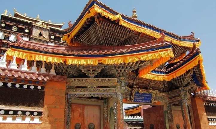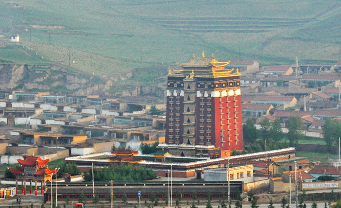 位于甘肅安多藏區合作市,它的全稱是“安多合作米拉日巴九層佛閣”,名字雖然有點兒長,卻也講得很明白。始建于清乾隆四十二年(1777年),原建樓閣已毀于“文革”。現存建筑重建于1988年5月,歷時四年落成。米拉日巴佛閣是為紀念米拉日巴而修建的佛閣。是藏傳佛教噶舉派(白教)在安多藏區最主要的填充院。