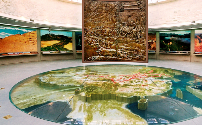 油畫“長城萬里圖”以寫意和寫實相結合的表現手法將中國長城的主要景觀濃縮于畫卷之中,油畫面積為220.5平方米,為西北之最。超寫實雕塑場景-“西出陽關、春風玉門”以河西長城的陽關和玉門關為背景,運用現代高分子材料為手法,生動逼真地再現了盛唐時期絲綢之路上中西文化交流的盛況。版權所有山東聊城聊之旅國際旅行社有限公司,轉載必究!“醉臥沙場”場景的背景油畫描繪了“大漠孤煙、長河落日”恢弘壯闊的邊塞風光,雕塑則表現了“醉臥沙場君莫笑,古來征戰幾人回”征戰場面的殘酷、悲愴和豪壯。