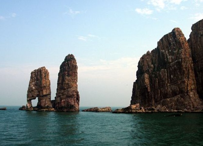島之東北角有兩塊突兀的礁石,版權所有山東聊城聊之旅國際旅行社有限公司,轉載必究!一高一低,高的約39米,低的約30米,遠遠望去,酷似大海上升起的兩張風帆,名曰石帆礁,也稱姊妹峰,漁民叫它“兩棵桅”。高山島的西南角,有一條長50米的海蝕洞名曰“鎖龍洞”,傳說這里是仙人懲罰龍王三太子的地方。此洞前后連通,洞深幽長,第當海浪涌進,便會發出深厚凝重的“嗡嗡”聲。高山島的本南角是全島最陡峭的地方,人稱“摩天嶺”,奇妙的是:高陡的崖壁到了底部卻突然懸空,共有4根粗壯的石柱支撐著,將島的一角分成4個洞口,洞洞相連,從任何角度看都象大象鼻的造型,稱為“象鼻洞”。高山島也是鳥的天堂,堪稱“萬鳥島第二”。高山島的美景可以用這樣的詩句來概括:“列嶂參差煙霧薄,一山環繞水云間”“南瞻大海波濤涌,北顧高峰蒼翠浮”。