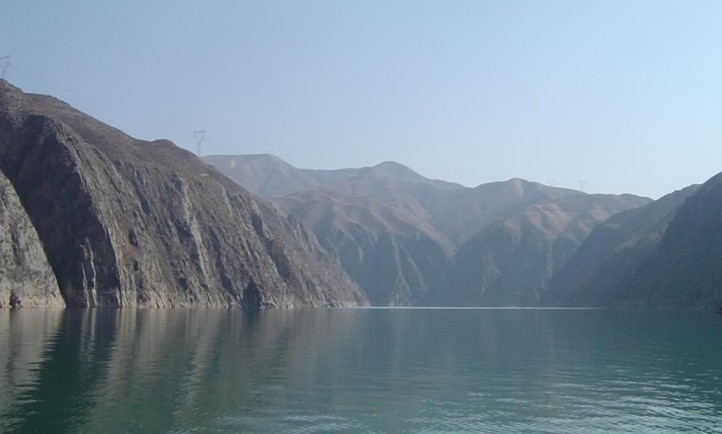 在甘肅永靖縣境內。黃河兩岸崇山峻嶺, 形成峽谷。1974年建成具有發電、防洪、灌溉、養殖、航運等功能的綜合性水利樞紐工程。一條長840米、高147米的巨大攔河壩把黃河攔腰斬斷, 形成了劉家峽水庫(庫容57億立方米,水域面積130平方公里),大壩下安裝了五臺國產大型水輪發電機組,成了總裝機容量122.5萬千瓦年發電量57億度的黃河上游第一座水力發電站。