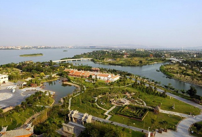 廈門園博苑的地址選在“華僑旗幟”陳嘉庚先生的故鄉(xiāng)——集美中洲島。園博園規(guī)劃片區(qū)總面積6.76平方公里,其中陸域面積3.03平方公里。主要包括園博園主展區(qū)、生態(tài)濕地公園、水景及水上運動、溫泉度假村等商業(yè)配套設施。園博園片區(qū)規(guī)劃以半島、島嶼的形式進行總體布局,由九個島嶼和兩個半島組成。其中五個為展園島嶼,四個小島為生態(tài)景觀島。以此為基礎,分期規(guī)劃建設東邊的自然原生島、西側的杏林苑、中部的教育之園、石文化園和北側的山林休閑園,形成一片中央公園式的大綠地。